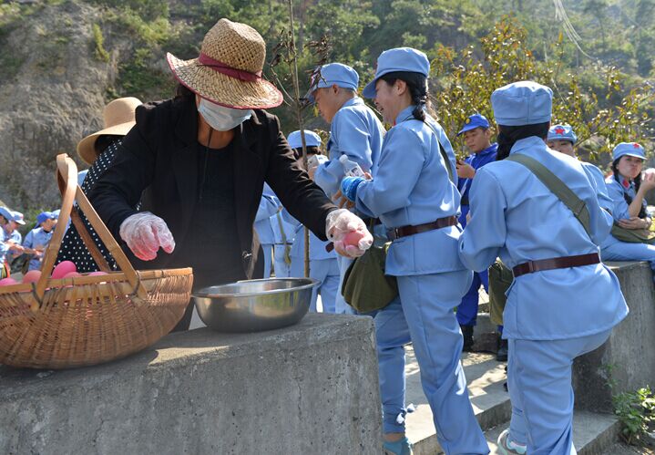 一路上,天信隊(duì)員發(fā)揮了發(fā)揚(yáng)了紅軍不怕艱苦、團(tuán)結(jié)奮進(jìn)、克服困難的革命精神。盡管山路崎嶇,兩邊雜草叢生,但隊(duì)員們依舊排著整齊的隊(duì)伍,勇往直前,激情高歌,每當(dāng)有隊(duì)員感到體力不支放慢速度時(shí),其它隊(duì)員不由而約地為其加油鼓勁,并在政委的指揮下喊出整齊響亮的隊(duì)號(hào)天信天信,奮勇前進(jìn),伴隨著一聲聲鏗鏘有力的吶喊聲音,隊(duì)員們又重新充滿了力量!在龍井休息站,隊(duì)員們分享到了當(dāng)?shù)乩习傩辗职l(fā)的紅糖包和紅雞蛋。因?yàn)楸敬翁煨攀亲鳛橐粋€(gè)團(tuán)隊(duì)參加這種大型活動(dòng),所以每位天信隊(duì)員都特別注意自身言行,自覺地把產(chǎn)生的垃圾裝袋后帶走,用實(shí)際行動(dòng)踐行著天信人愛護(hù)環(huán)境的承諾。